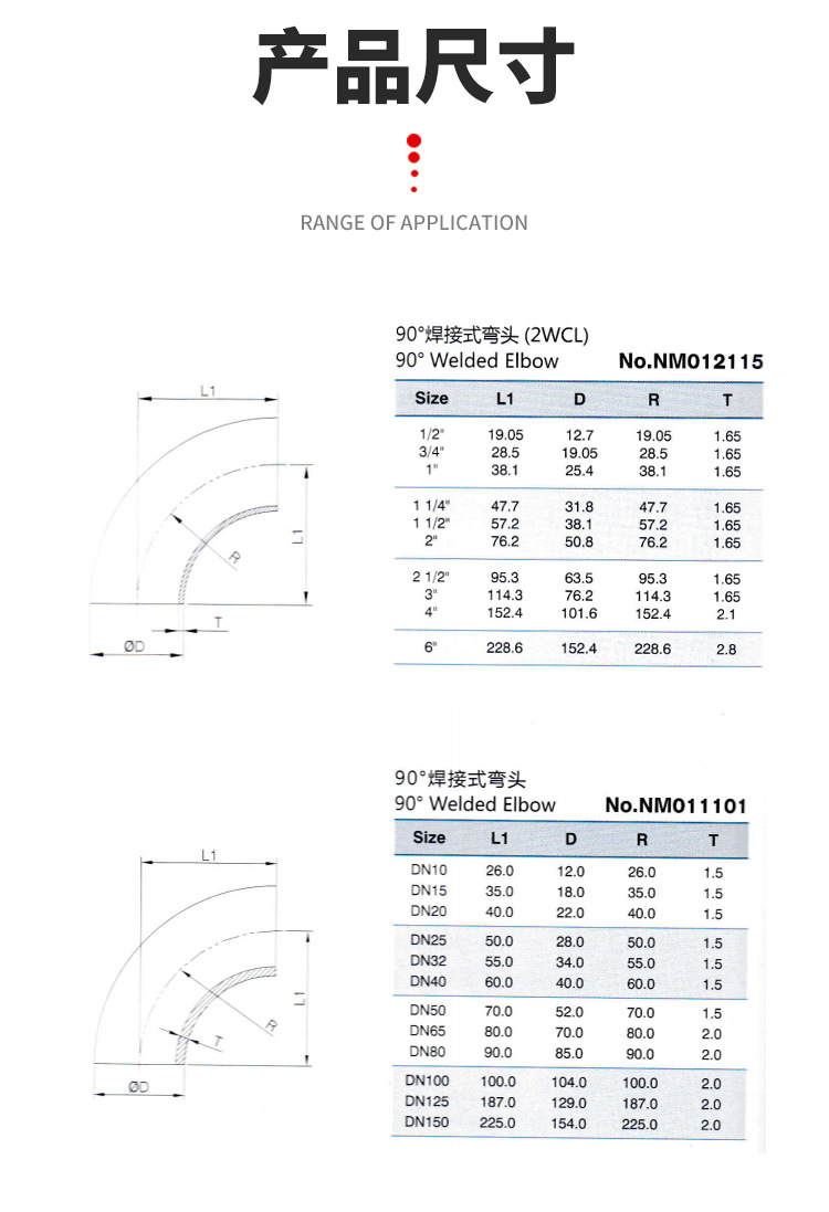 产品口径:DN10-DN300、3A1/2"-12"、ISO标准Ф12.7-Ф204