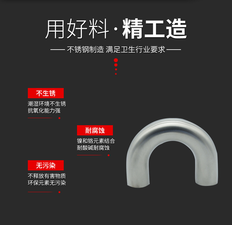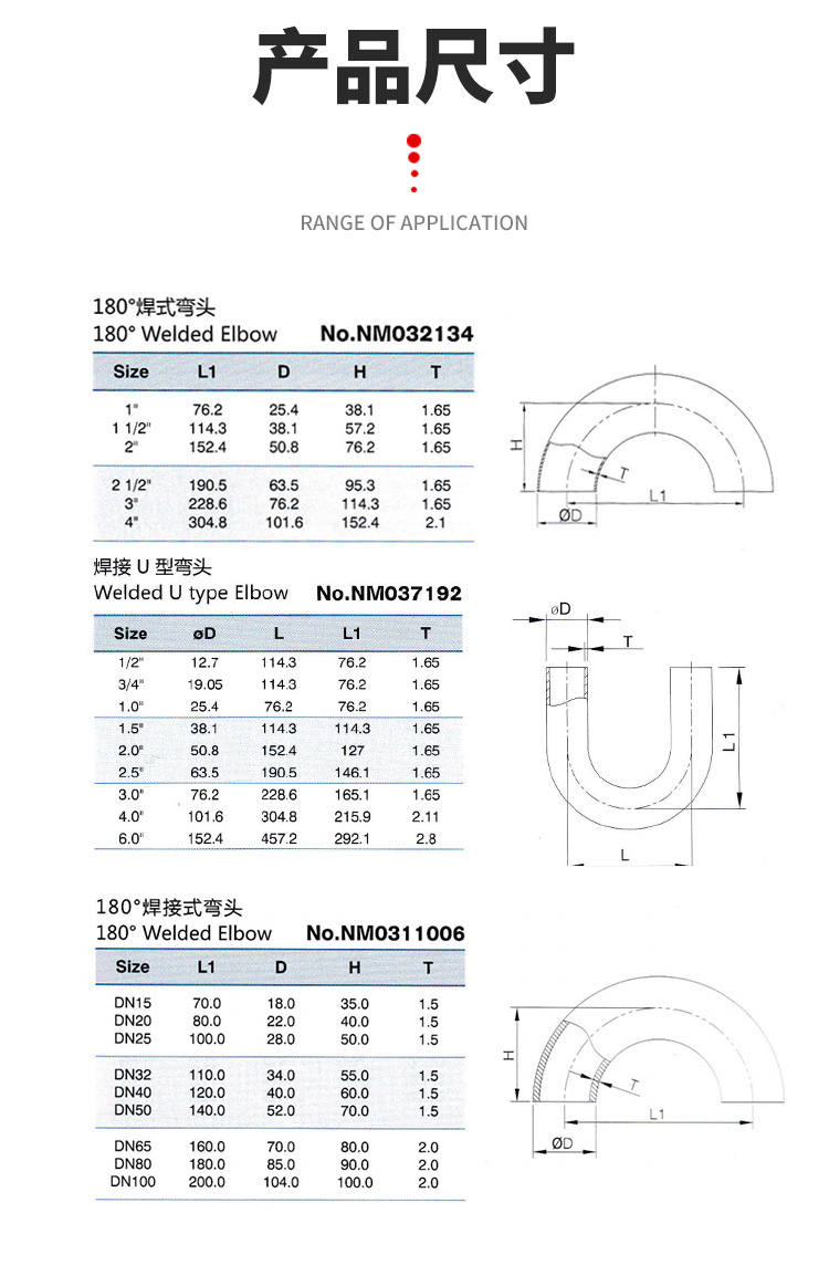 【产品名称】 不锈钢180度弯头 U型加长弯头