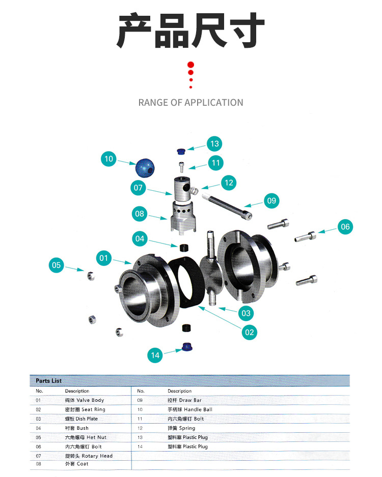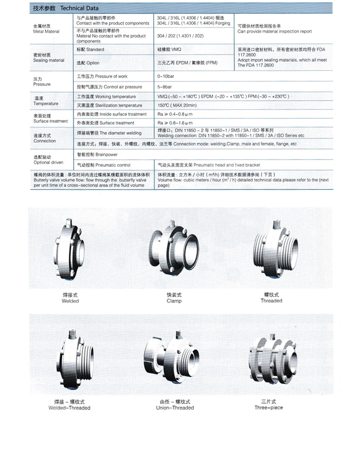 规格:DIN标准:DN15—DN100;ISO标准:Ф19(0.75s)——Ф108(4.25s)