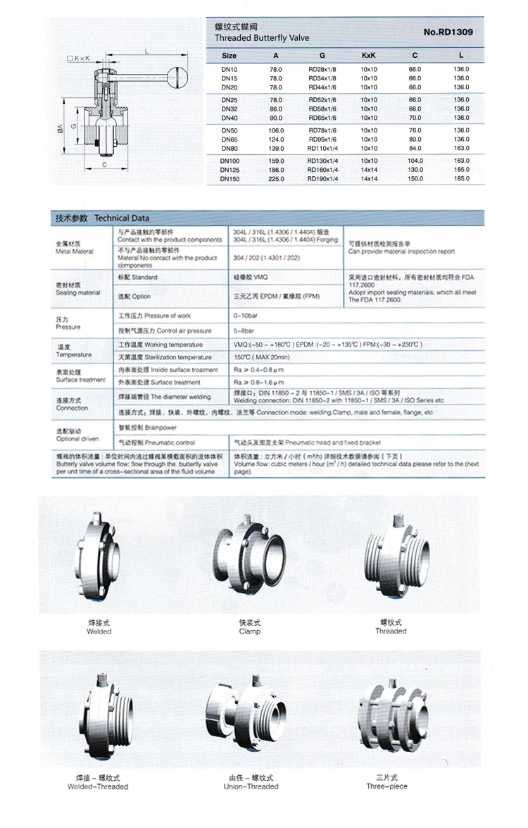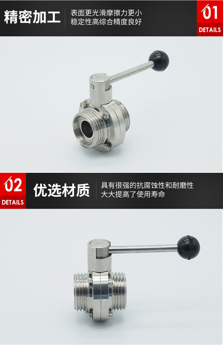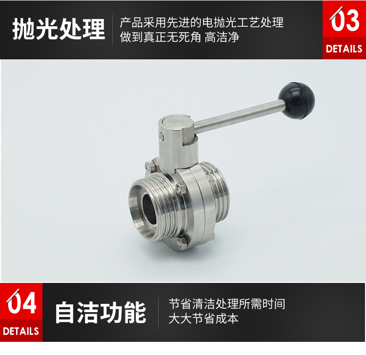 名称:卫生级手动螺纹蝶阀 卫生级螺纹蝶阀