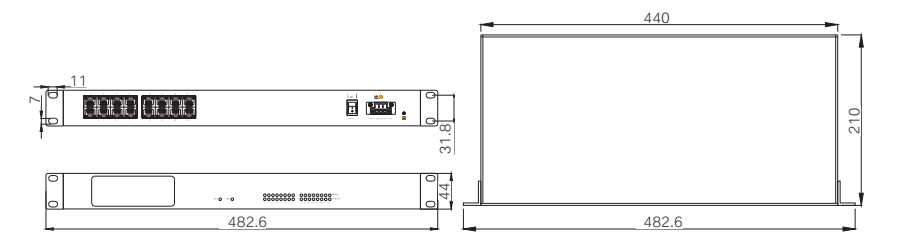482.6mm×44mm×210mm (W×H×D)