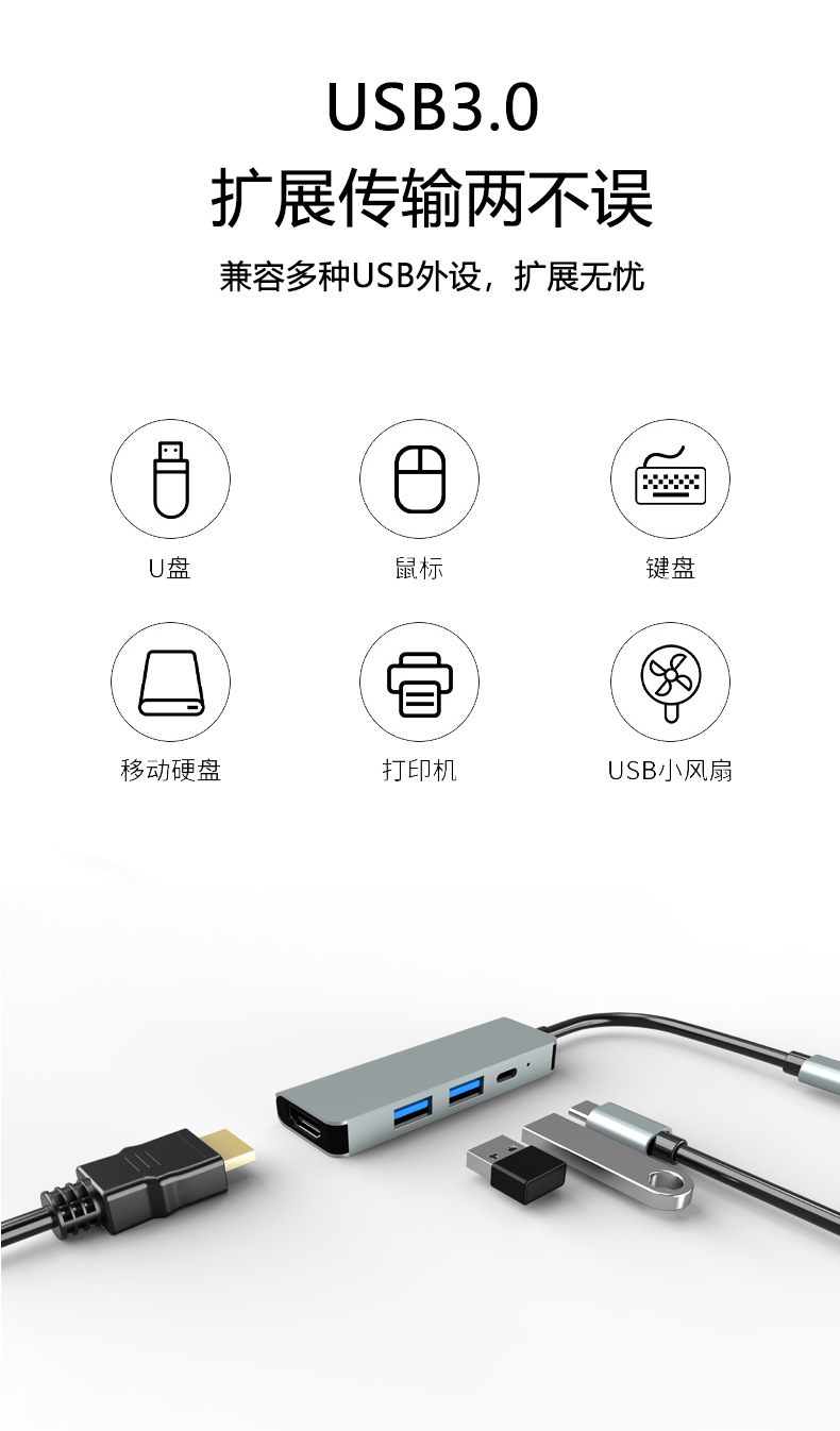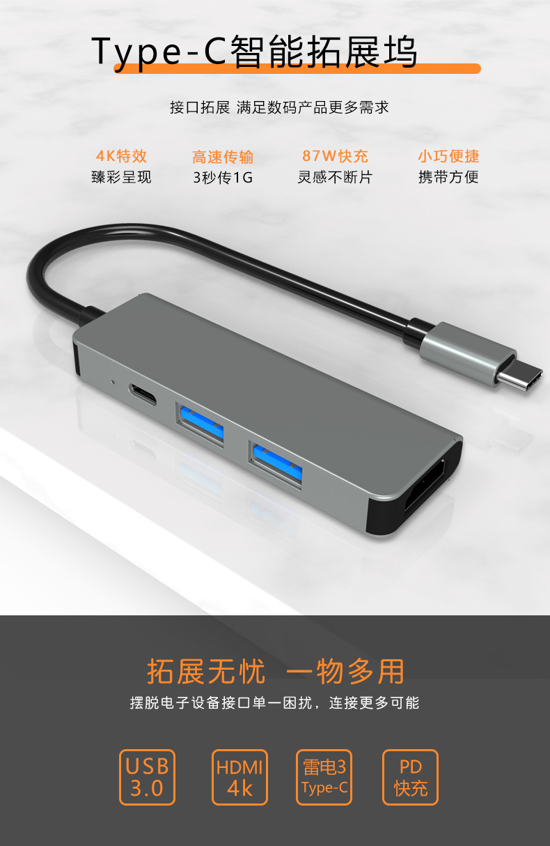 深圳厂家批发TYPE-C拓展屋 USB拓展坞网线转换器集线器分线器
