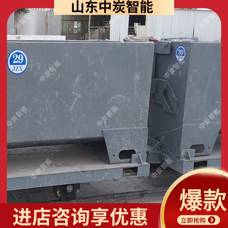 1.自卸式集装箱主要用于井下物资、货物的运输。运输时,起吊钩在运输起吊环上,两个半边的箱体底部由于挤在一起,加上箱体和货物的自身重力,这时底部是越拉越紧,整个箱体是闭合状态,此时可以视作一个密闭的箱体,进行物资或货物的运输。