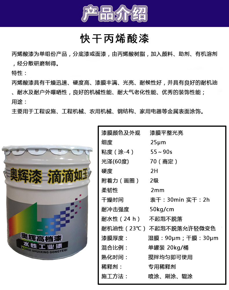 快干丙烯酸面漆 金属和墙面可用 可色卡调色 河南厂家