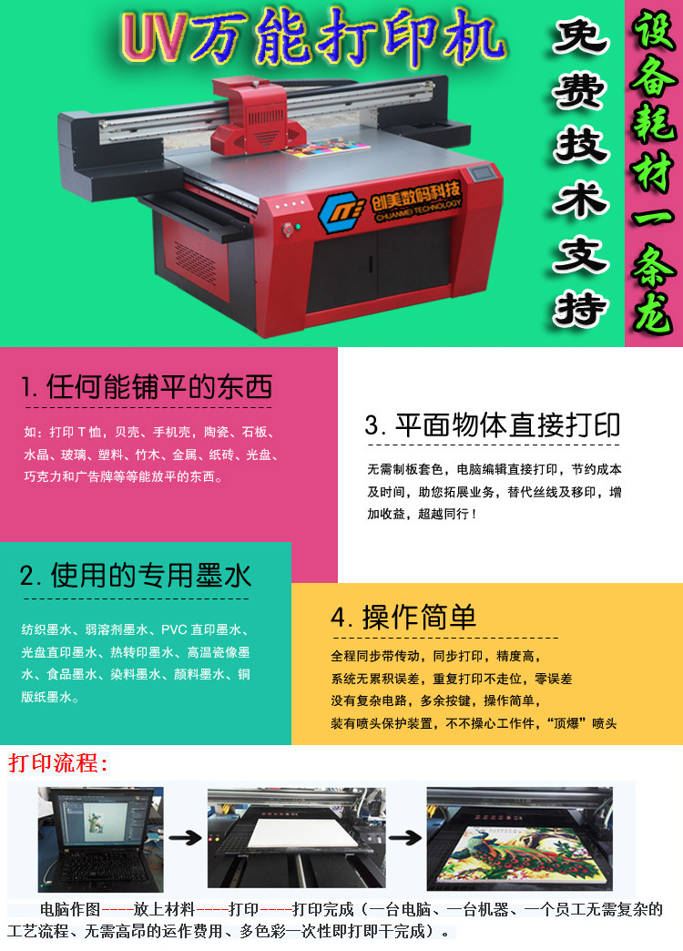 在材质图案表面掩盖一层光油,例如:瓷砖、手机壳等材质比较多见。整体上光油主要是提高印刷成品表面的光泽度。uv打印机整体上光油时,建议增加一个喷头及墨囊打印光油。
