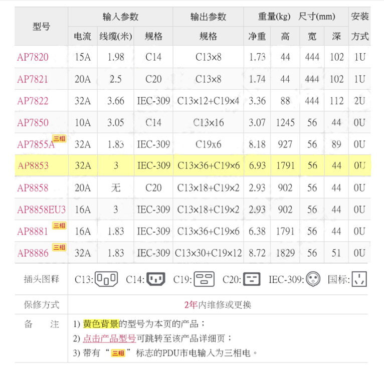 APC 施耐德 Metered Rack PDU AP8853 计量型机架配电单元
