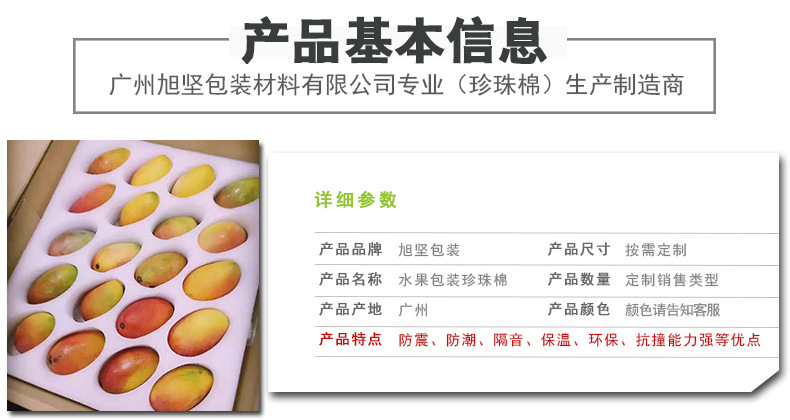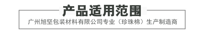 广州旭坚包装材料有限公司20年生产经验,生产:EPP珍珠棉,珍珠棉片材,珍珠棉异型材,珍珠棉贴合,珍珠棉成型,珍珠棉定做,EPP产品,EPP保温箱,EPP航模,EPP飞机模型,EPP泡沫,EPP汽车配部件,EPP包装材料,泡沫包装,成型泡沫,异型泡沫,海棉,定型海棉,成型海棉,EVA等等包装材料,产品质量保证,更省钱。