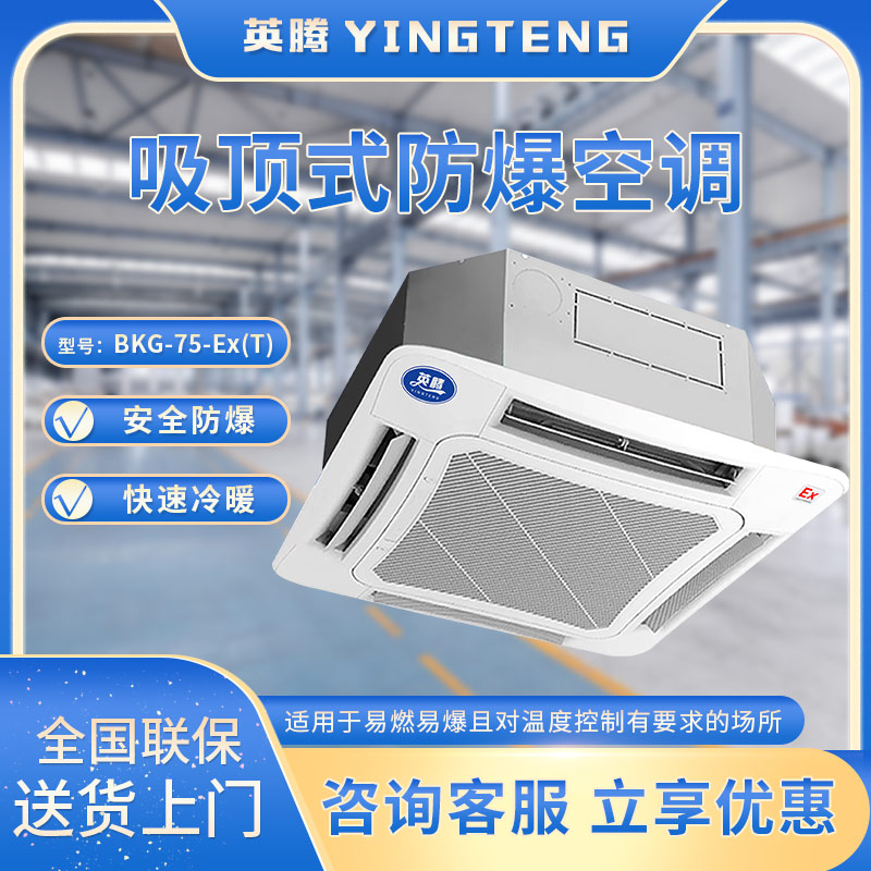英腾吸顶式防爆空调是一款适用于易燃易爆场所的吸顶式防爆空调,具有四面出风功能,可以快速均匀制冷或制热。该空调采用防爆电气部件,具有更高的安全性能和可靠性。