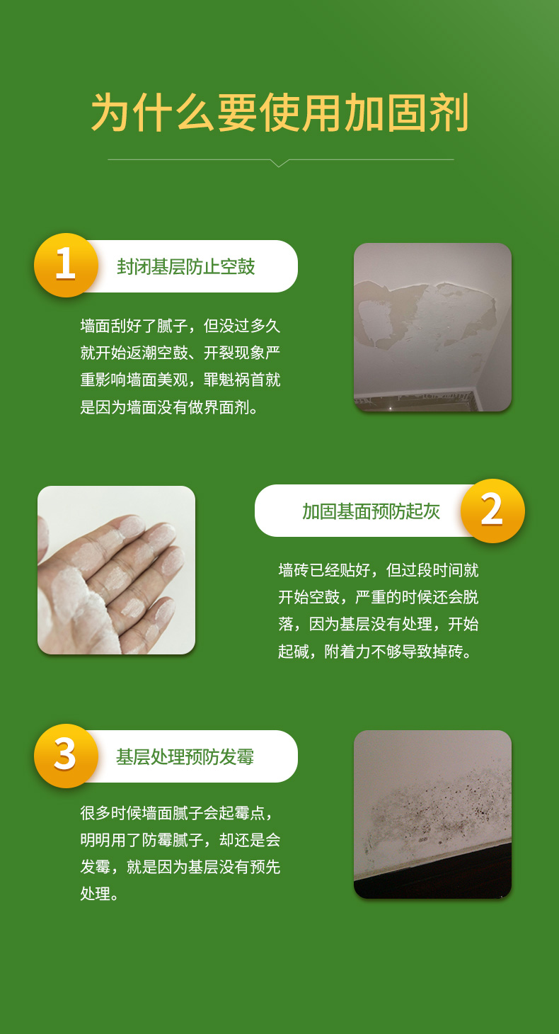 多功能墙面加固剂是一种由聚合物乳液、多功能助剂组成的新型高渗透性界面处理材料。具有封闭性好、渗透性强、拉毛强度高等特点,适用于混凝土、砂浆层及各种隔断材料基层的界面处理。