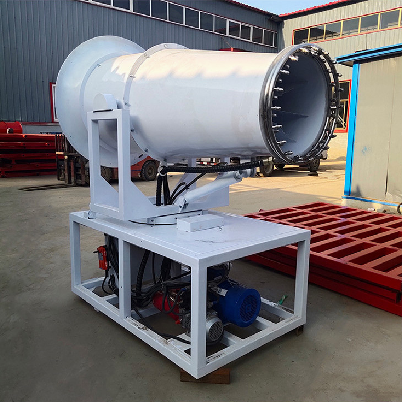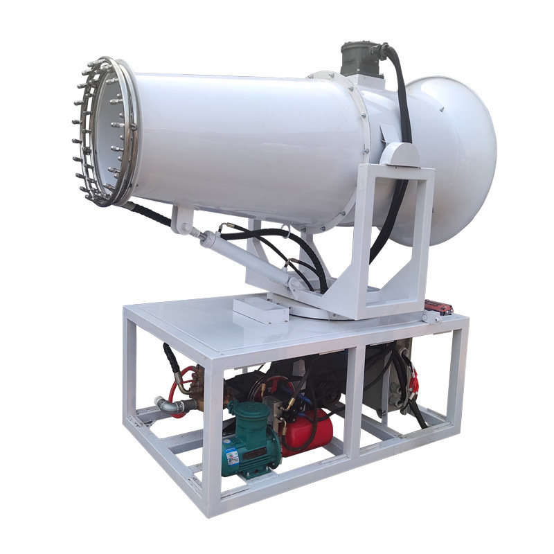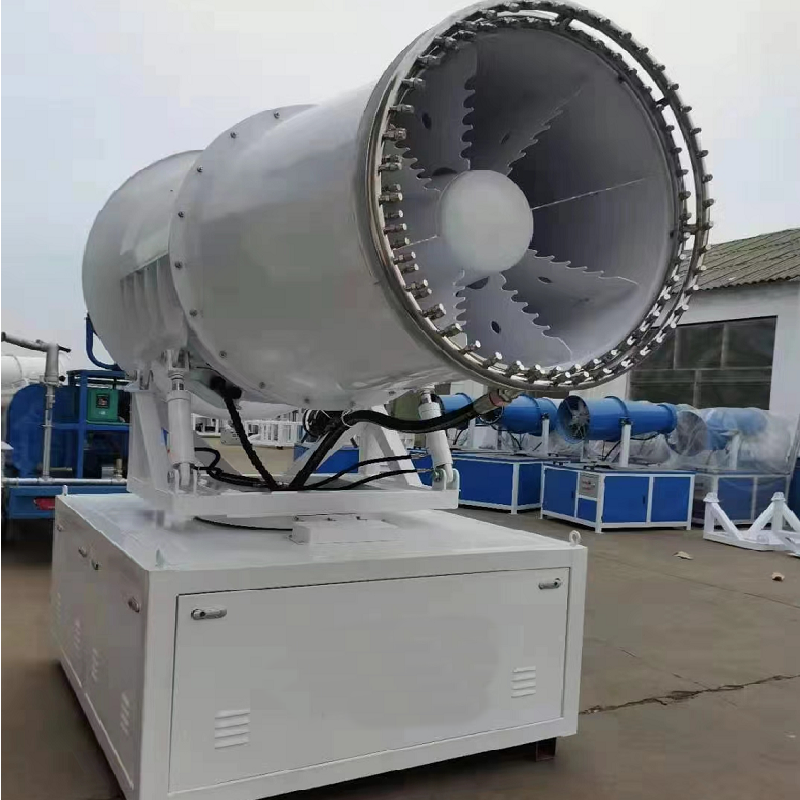 降尘雾炮机的工作原理是通过高压将水雾化成微米级颗粒,再通过风机或喷嘴将水雾远距离输送至粉尘区域,水雾与空气中的粉尘颗粒碰撞、粘附后沉降,达到降尘效果。 ?