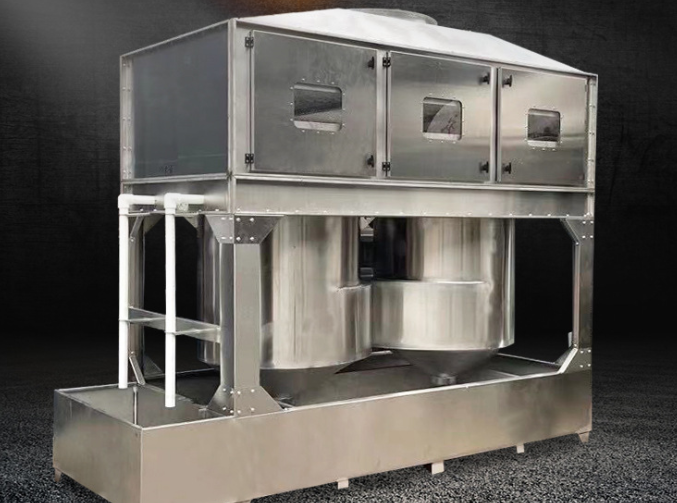 对有机废气的治理,传统也比较有效节能的方法是液体吸收法,采用液体吸收法治理废气,关键在于废气净化设备的选取,我公司基于原有圆形处理塔的原理,自主研发了净化效率高,操作管理简单,使用寿命长的方形旋转洗涤设备。该工艺与产品具有结构简单、能耗低、净化效率高和适用范围广的特点。能有效去除气体(HCI)、气体(HF)、氨气(NH3)、雾(H2SO4)、铬酸雾(CRO3)、氰氢酸气体(HCN)、碱蒸汽(NAOH)、气体(H2S)、(HCHO)等水溶性气体,并能过滤废气中所含的大部分粉尘。