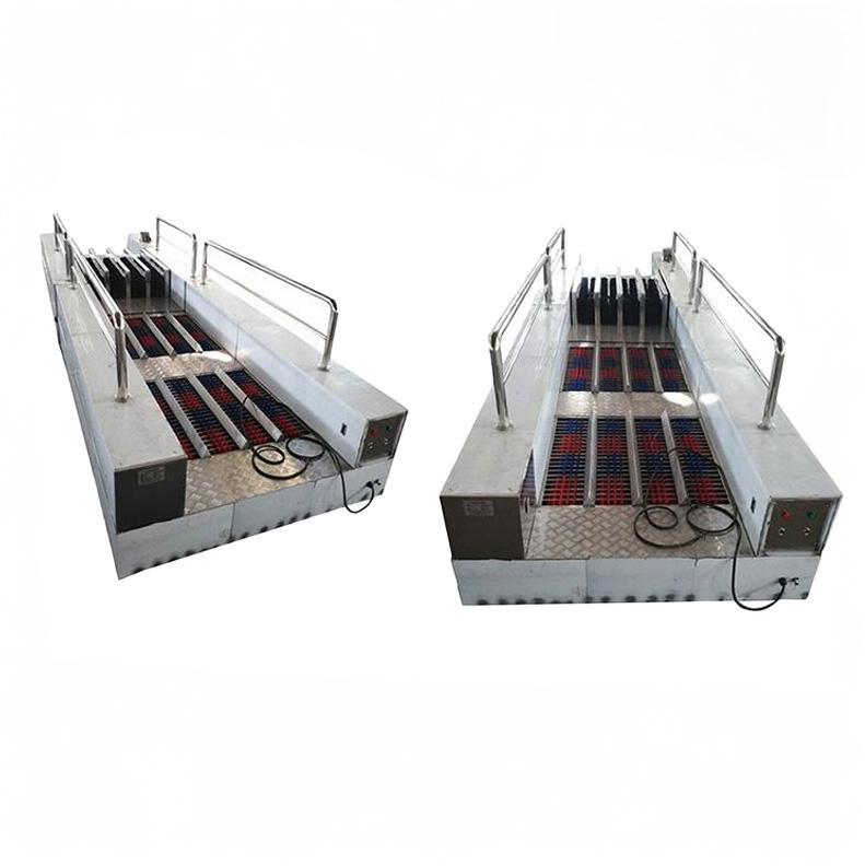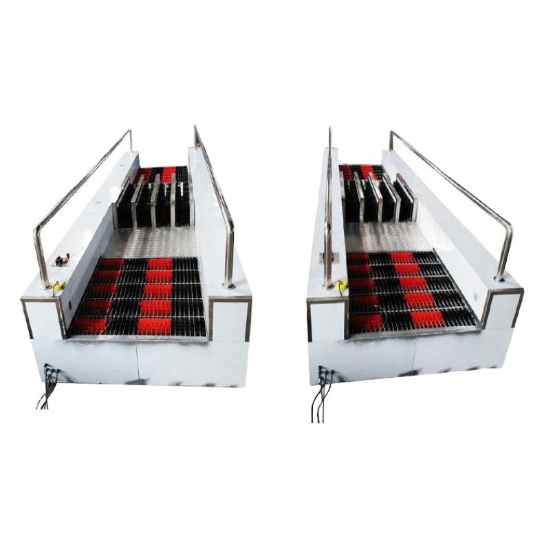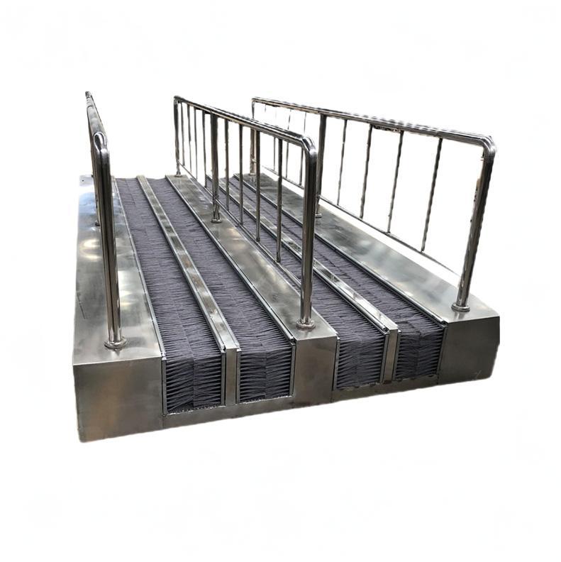 ?清洁过程?:人员行走于设备中时,刷辊通过链条传动装置旋转,配合高压水流清除靴面污渍。 ?