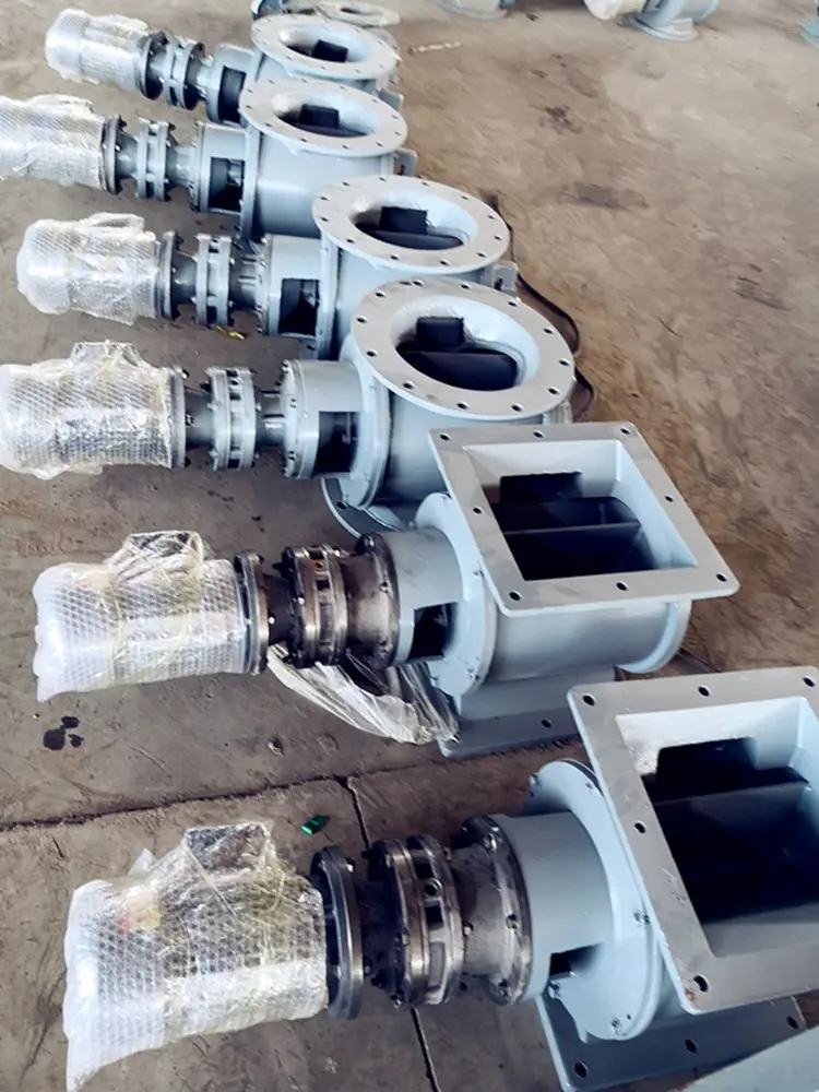 星型卸灰阀依靠物料的重力作用及给料机工作机构的强制作用,将仓内的物料卸出并连续均匀地喂入下一装置中去。星型卸灰阀主要由电机、减速机、壳体、叶轮、主轴、轴承、左右端盖组成。采用钢板焊接结构,叶片耐磨性强,集传动装置、传动轴、叶片联为一体。由于星型卸灰阀的轴承和减速机都是向外凸出,能够避免粉尘挤进轴承和大颗粒物料卡死现象。工作时由减速电机通过联轴带动叶轮转动,把壳体上部的物料均匀带到下部,由下一个装置把物料送走。所以,星型卸灰阀只能直立安装,而不允许水平安装,给料机的上部要保持一定的料柱。
