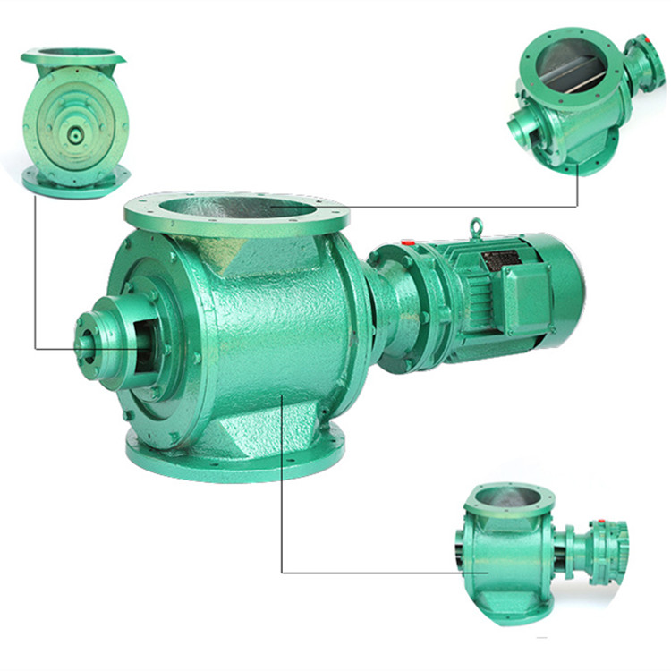 星型卸灰阀依靠物料的重力作用及给料机工作机构的强制作用,将仓内的物料卸出并连续均匀地喂入下一装置中去。星型卸灰阀主要由电机、减速机、壳体、叶轮、主轴、轴承、左右端盖组成。采用钢板焊接结构,叶片耐磨性强,集传动装置、传动轴、叶片联为一体。由于星型卸灰阀的轴承和减速机都是向外凸出,能够避免粉尘挤进轴承和大颗粒物料卡死现象。工作时由减速电机通过联轴带动叶轮转动,把壳体上部的物料均匀带到下部,由下一个装置把物料送走。所以,星型卸灰阀只能直立安装,而不允许水平安装,给料机的上部要保持一定的料柱。砖瓦建材厂专用星型卸料器多型号。