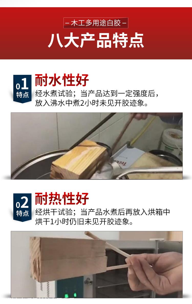 汉林牌多功能木工胶采用优质进口原料制造而成,特点:耐水耐热、耐老化、环保无毒,使用方便。各项指标由于普通白胶。