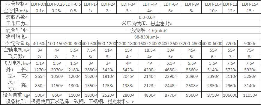 LDH系列犁刀式混合机混合时间短,对粒度、密度差异大的物料混合有较好的适应性。