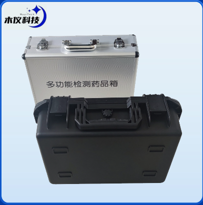 24.MY-ZJA12+高强度PVC工程塑料+手提铝合金箱设计,坚固耐用,便于携带,供电方式为交直流两用,可野外流动测试配套成品药剂。