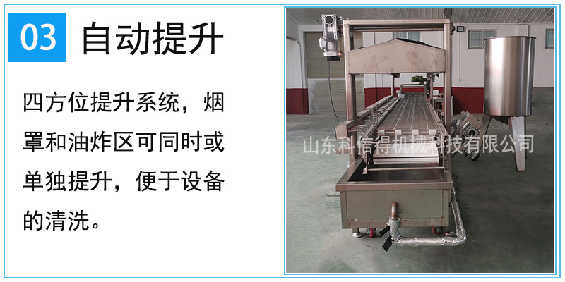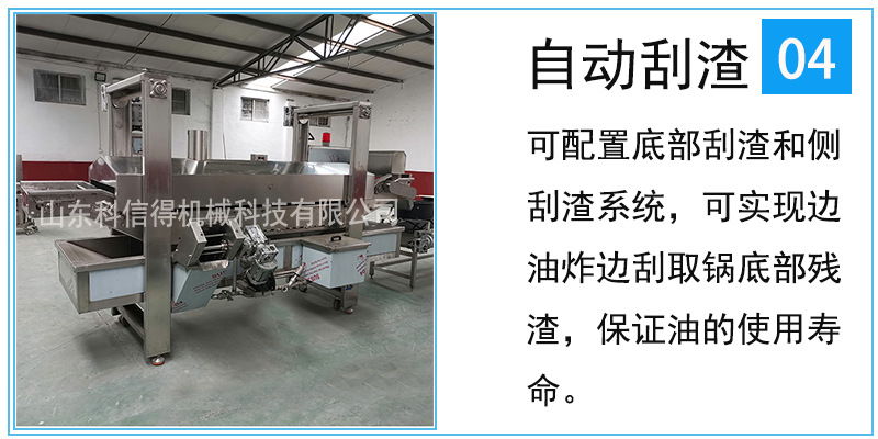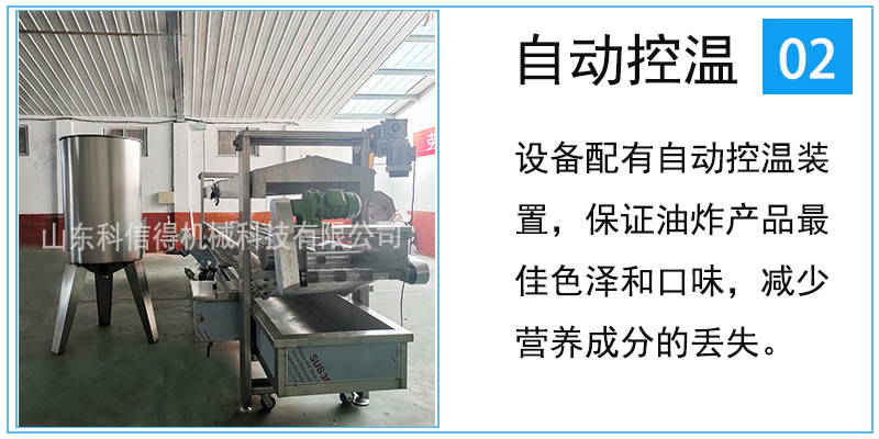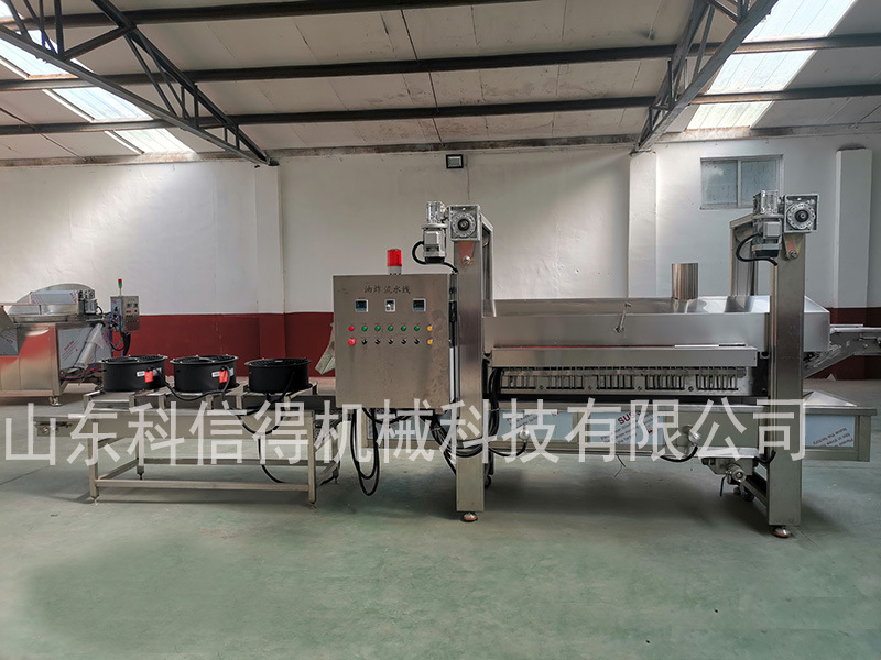 科信得电加热自动油炸机采用食品级不锈钢加工制造,油炸温度智能自控,可根据不同的油炸产品设置温度,炸制时间可以根据不同产品进行设置;独特设计的产品输送系统、排渣系统、油循环系统、排烟系统、电控系统等确保油炸线安全、高效、稳定地运行,确保炸制的产品色、香、味、俱佳。采用变频网带输送产品,控制网带的输送速度,从而确保食品的准确油炸时间。该设备可广泛应用于肉制品,肉块、炸鸡翅、锅巴、水产、蔬菜、面食等油炸食品加工。