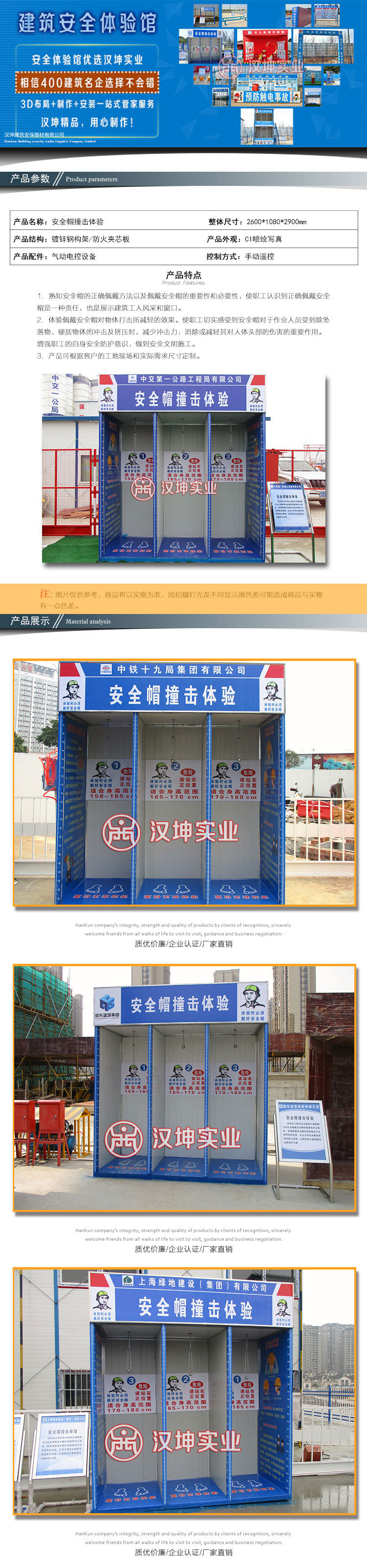 2.体验佩戴安全帽对物体打击所减轻的效果,使职工切实感受到安全帽对于作业人员受到除坠落物、硬质物体的冲击及挤压时,减少冲击力,消除或减轻其对人体头部的伤害的重要作用。增强职工的自身安全防护意识,做到安全文明施工