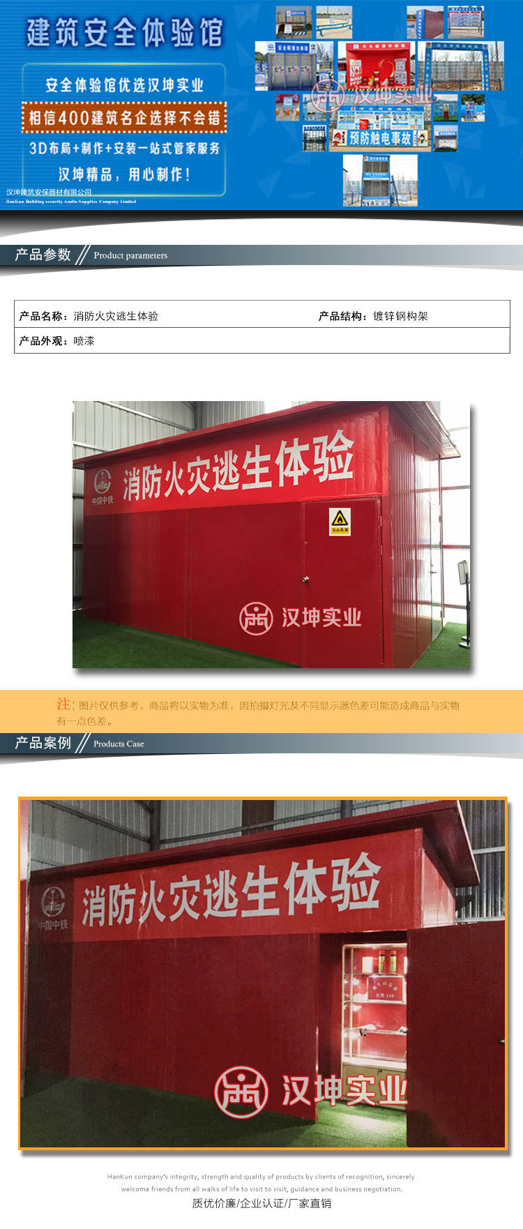 消防火灾逃生体验 施工现场安全体验区设计+制作+安装一体化 汉坤实业