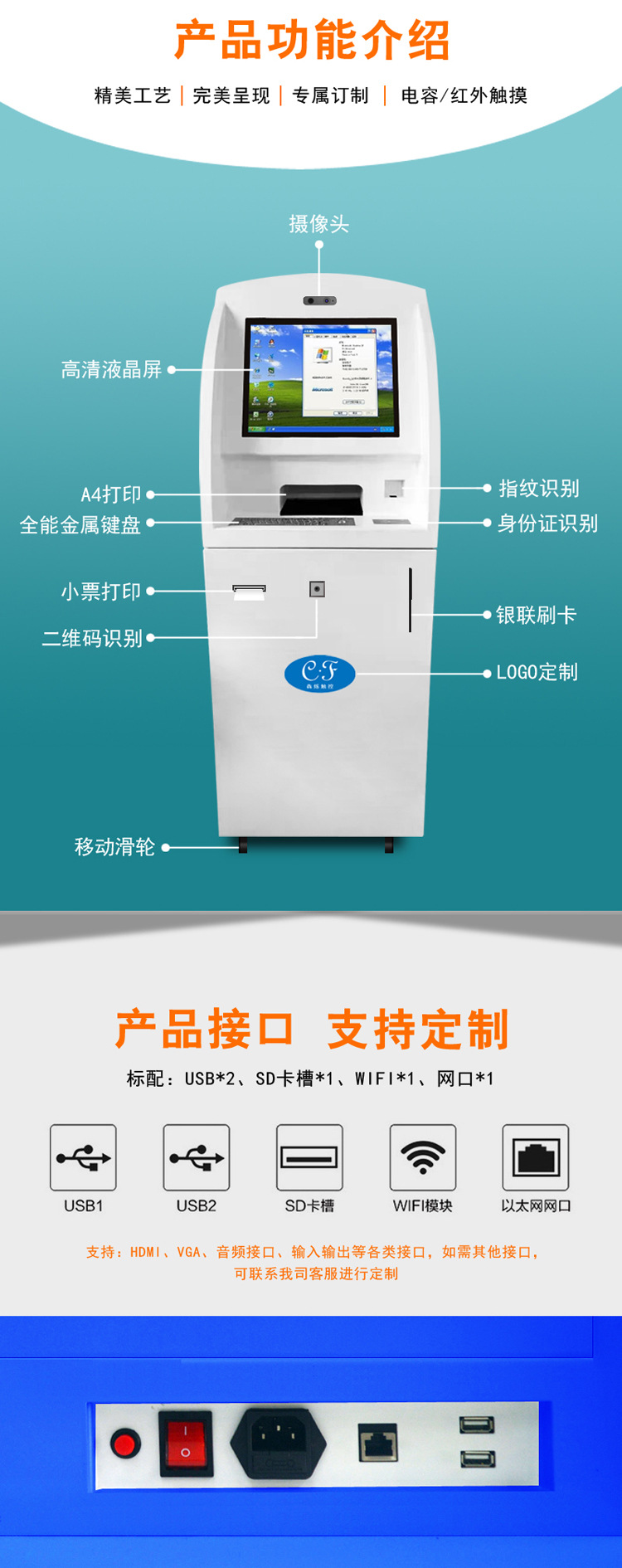 cooclu22寸触摸屏自助终端机 自助查询登记打印机FL1900-Z04机 政务 自助缴费机