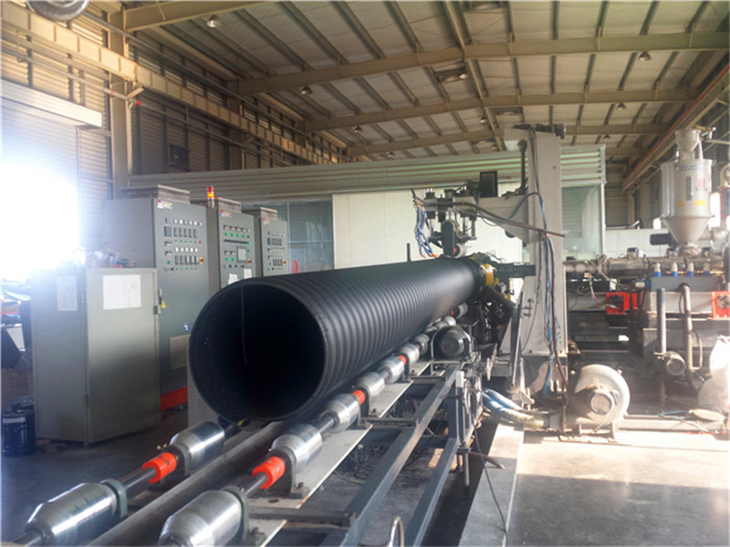 解决好管材成型问题:钢带增强聚乙烯螺旋波纹管整体性要好,涂塑钢带通过成型机,横向断层压成近似U形,而且纵向弯曲成螺旋形的钢肋,缠绕并熔接在聚乙烯内、外层之间。