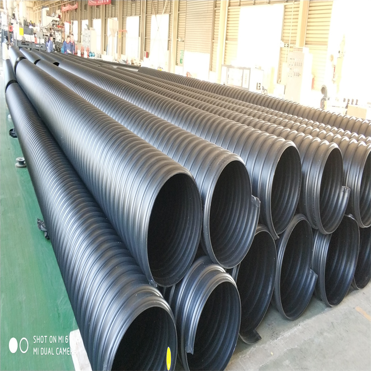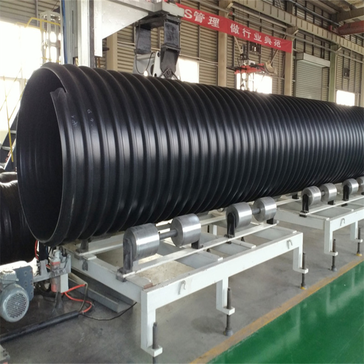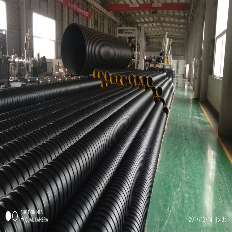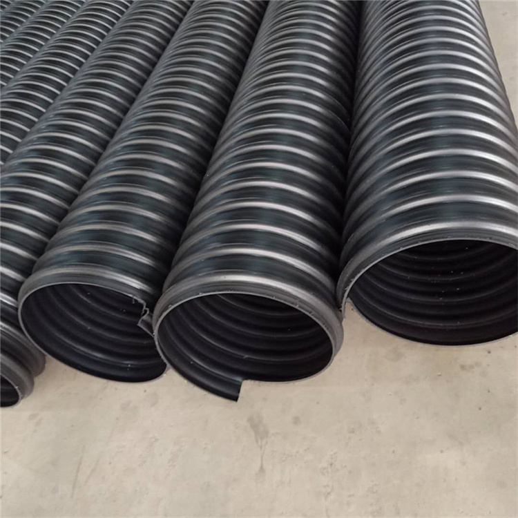 DN300HDPE钢带波纹管将高刚度、高强度的钢带和柔韧、耐腐、耐磨的聚乙烯结合在—起,可以使管材形成高环钢度、高强度、耐腐蚀、密封性好的大口径塑料管材制品,填补了较大直径塑料埋地排水管口径的限制,在达到高环刚度性能要求的同时,还要能降低塑料管材成本。