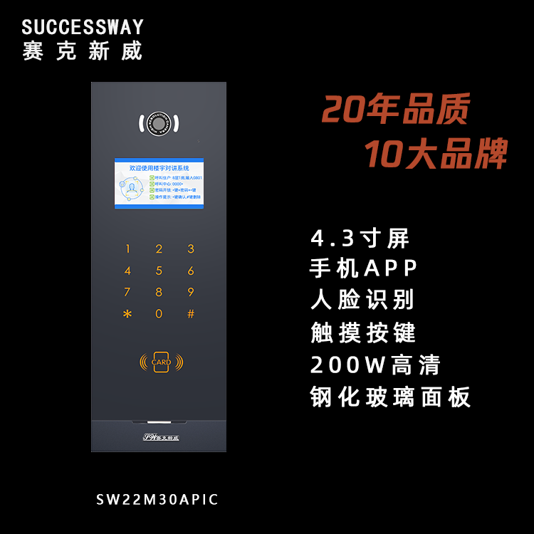 SW2221系统门口机采用数模融合设计、安卓操作系统,具备人脸(本机存储)、指纹、刷卡、密码开锁,广告播放等功能;支持手机APP可视对讲及开锁、可与公安网对接,支持“雪亮工程”。 单元内采用CAN总线设计,抗干扰能力强,单主线可靠传输距离可达200米,入户线可达50米,图像清晰。室内机可带2防区报警,电源配置经济,系统总体造价低。