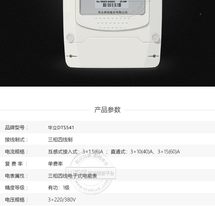 三相四线电表杭州华立DTS541 3*10(40)A 3*220/380V 1级三相电表产品特点: