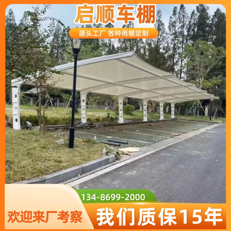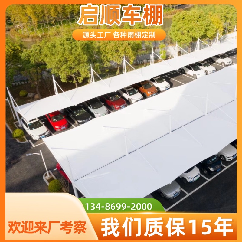 PVDF停车棚膜材钢结构车棚6米钢梁定做材料加工定做选启顺