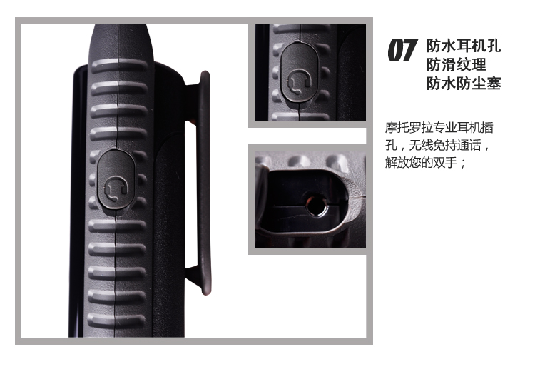 07 防水耳机孔,防滑纹理,防水防尘塞摩托罗拉耳机插孔,无线免持通话,解放您的双手;