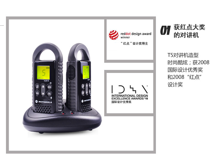 01 获红点大奖的对讲机T5对讲机造型时尚酷炫,获2008国际设计优秀奖 和2008“红点”设计奖;