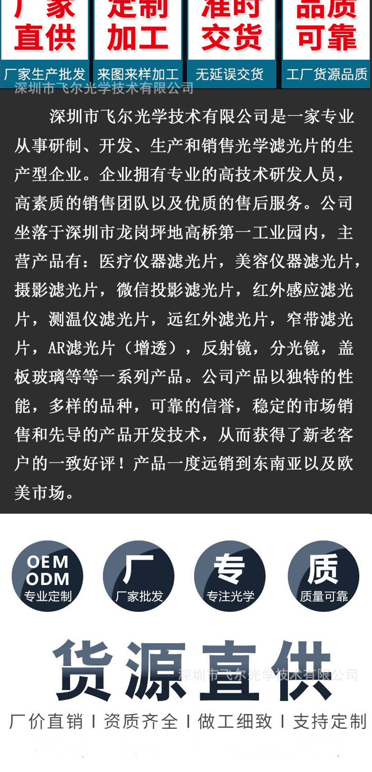 飞尔平面/圆形/方形/异形/超薄蓝宝石玻璃滤光片新品