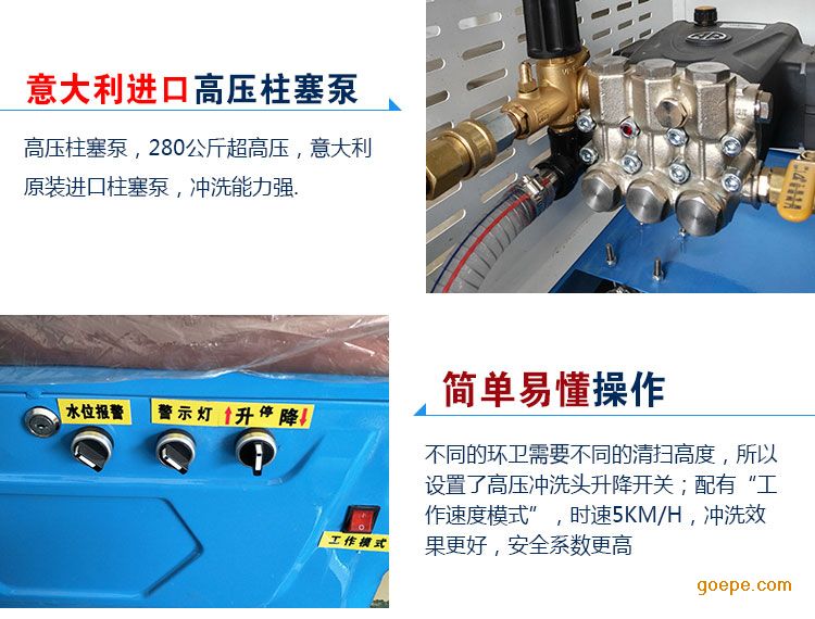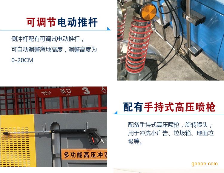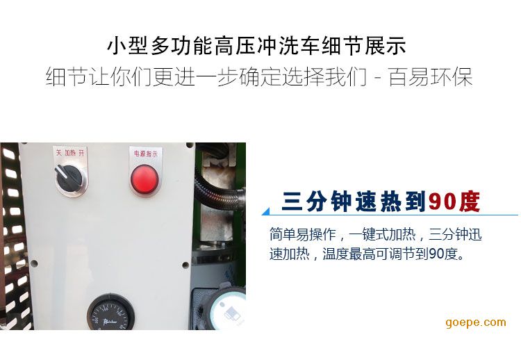 冷热一体高压冲洗车具备多功能冲洗作业能力,水温可加热到90摄氏度,热水模式对于城市小广告清理、清理重油污、垃圾桶、广场地面、公交站台花砖等效果明显,冷水模式主要用于城市人行道和辅道的快速冲洗和保洁。