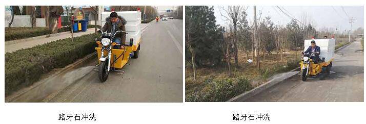 2、路牙石冲洗:针对人行道和辅道的路沿石冲洗效果非常便捷高效。
