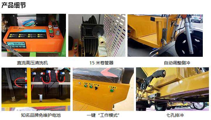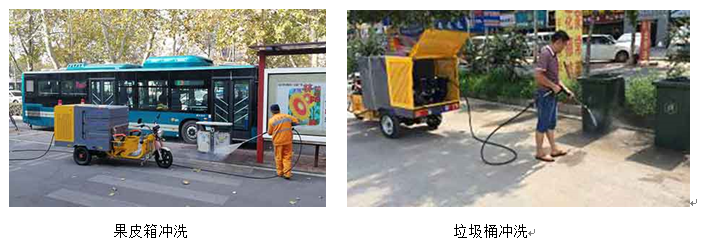 11. 配备手持式高压喷枪,旋转喷头,用于冲洗小广告、垃圾桶、地面垃圾。