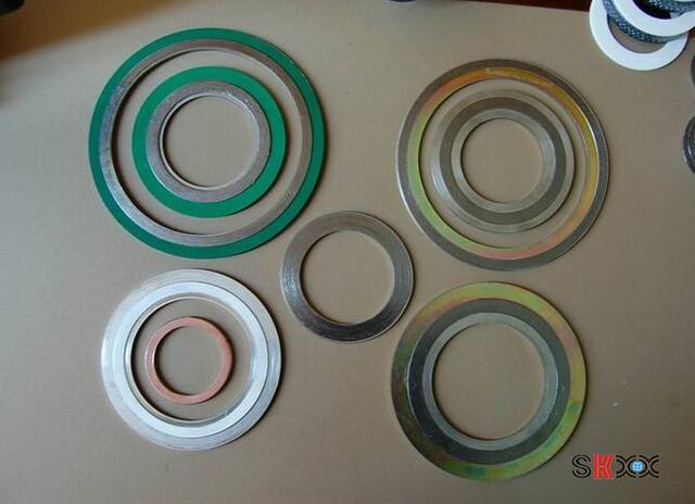 如垫片需要色标,请注明。 金属缠绕垫片采用SUS304、SUS316(“V”形或“W”形) 金属带及其它合金材料与石墨、石棉、聚四氟乙烯、无石棉等软性材料相互交替重迭螺旋缠绕而成,在开始及末端用点焊方式将金属带固定。