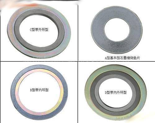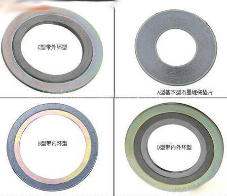 带内外环金属缠绕垫片由基本型金属缠绕垫片加上由钢板做成的内外环而构成,内外环用来加强压力、防止缠绕松动。内外环可选不同材质。金属缠绕垫片分四种形式:基本型金属缠绕垫片(FASTRACK-010102)、带内环金属缠绕垫片(FASTRACK-010102)、带外环金属缠绕垫片(FASTRACK-010103)、带内外环金属缠绕垫片(FASTRACK-010105)。