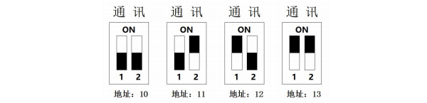 通讯地址 拨码开关用来配置通讯地址,如下: