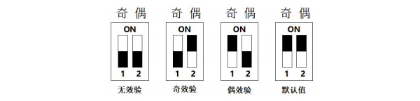 奇偶校验 拨码开关用来配置通讯奇偶校验位,如下: