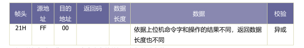 串口通信中,主机向模块发送命令,模块收到命令后解析并执行,执行完毕后主动将数据发送给主机。若命令错误,则模块直接丢弃接收到的数据,且不做任何回应。
