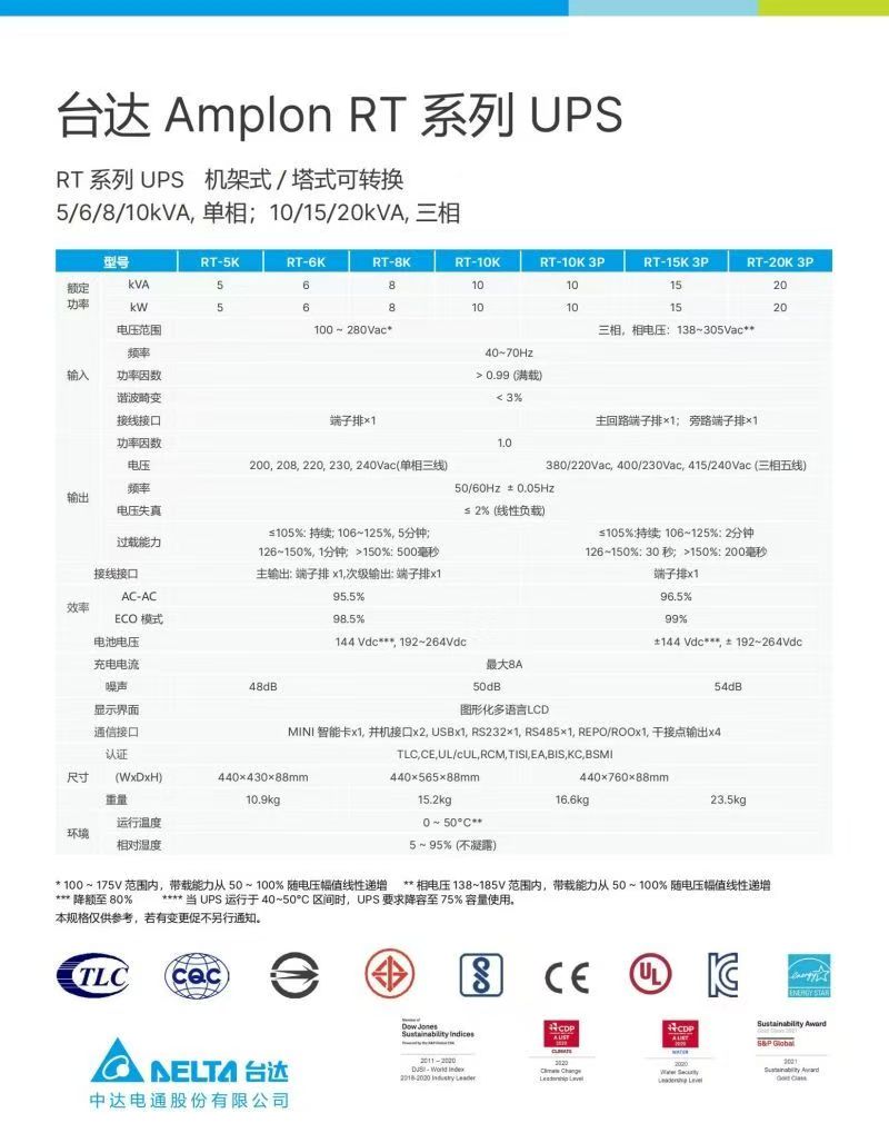 针对台达UPS电源RT 15K机架式三相不间断电源(15KVA)的相关信息,以下为您整理关键点及建议: