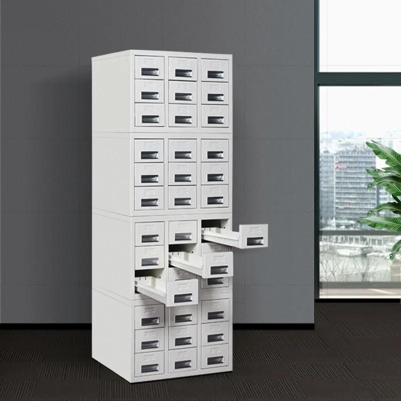 病理切片柜、蜡块柜、晾片柜、玻片柜采用高强度冷轧钢板为主体材料,表面经灰白色喷涂处理,具备耐腐蚀特性 [1-2]。标准产品外形尺寸为485×480×91mm(蜡块柜)及485×480×146mm(切片柜),两类存储柜可叠放使用以节省空间。抽屉单元配置分格设计,单个抽屉可容纳65个蜡块或400片切片 [1-2]。配备智能化标签检索系统,支持通过条码扫描快速定位样本。内置温湿度监测模块,实现防潮防霉功能。部分型号搭载智能密集存储架构,通过电动控制系统实现柜体自动移位,提高空间利用率。抽屉均配置安全锁具,确保病理样本的存取权限可控 [2-3]。