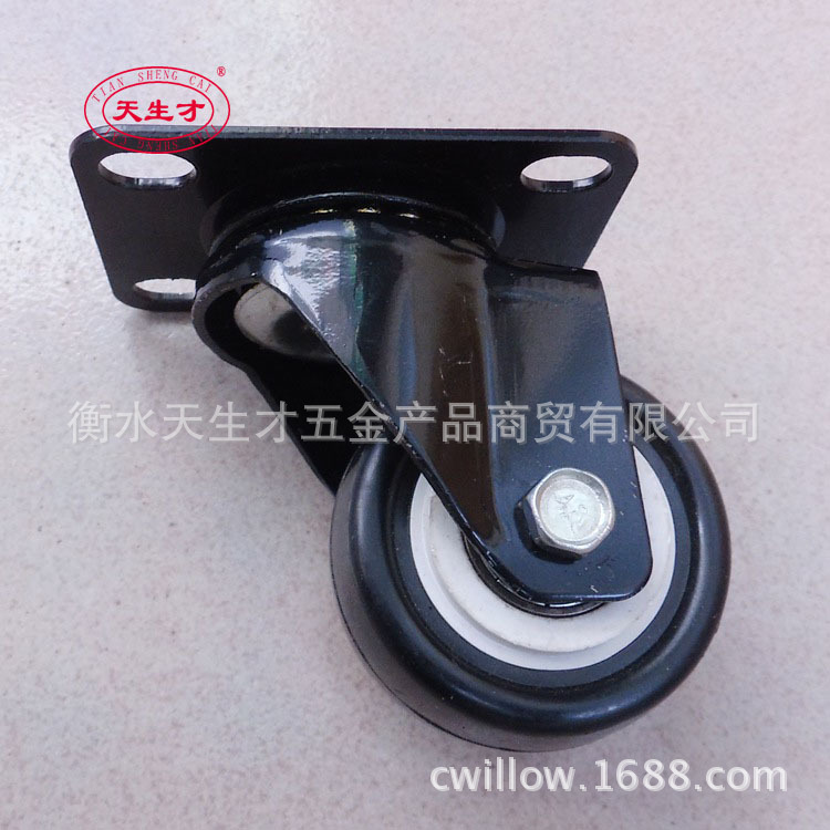 名称:小型万向轮A海拉尔小型万向轮A小型万向轮厂家 底座板厚度:2mm。 型号:小型双轴承金钻脚轮。 规格:2寸。 材料:聚氯(PVC)。 支架:电泳漆支架。 转向:万向(转向、活动式)。 如对产性能有特殊要求,请加QQ与我们联系: