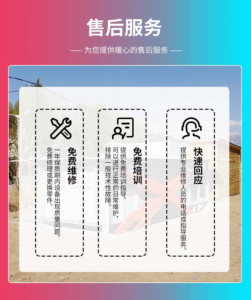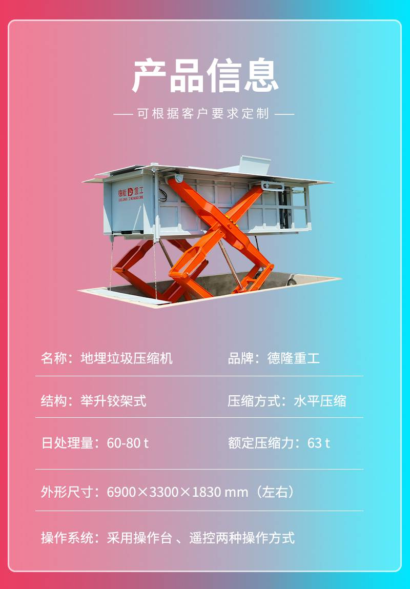 地埋式水平压缩垃圾中转站做好基坑之后,在基坑旁边设置带电源控制柜,电缆采用电压380V,电缆尺寸为3×10立方+2×4立方,预留1米左右的电缆接头,并用电工胶带包牢固。