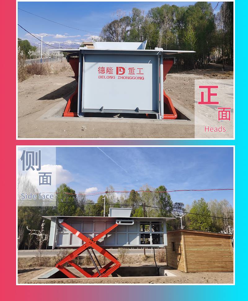 地埋式水平压缩垃圾中转站基坑在浇筑混凝土时,应提前将四个预埋件放置好(预埋件放置的位置,需要分为前面与后面,按照进车方向为前面)前面放置两个短的预埋件,后面放置两个长的预埋件,四个预埋件的高度水平面误差≤5mm,以中心线为基准,四个预埋件的左右误差≤10mm,预埋件钢筋应与主筋相连扎牢。基坑底面要沿着排水方向做成15°左右的斜坡,使压缩生活垃圾中挤压出来的污水沿着基坑的排污管自动流入集污井,污水经过处理后,达到排放标准后,再流入市攻排污系统,若无法流入市攻排污系统则在地坑附近做一个垃圾渗滤液储存装置用于临时储存污水,直径为700mm;井底直径1500mm,井底标高-2900mm。