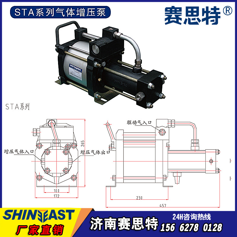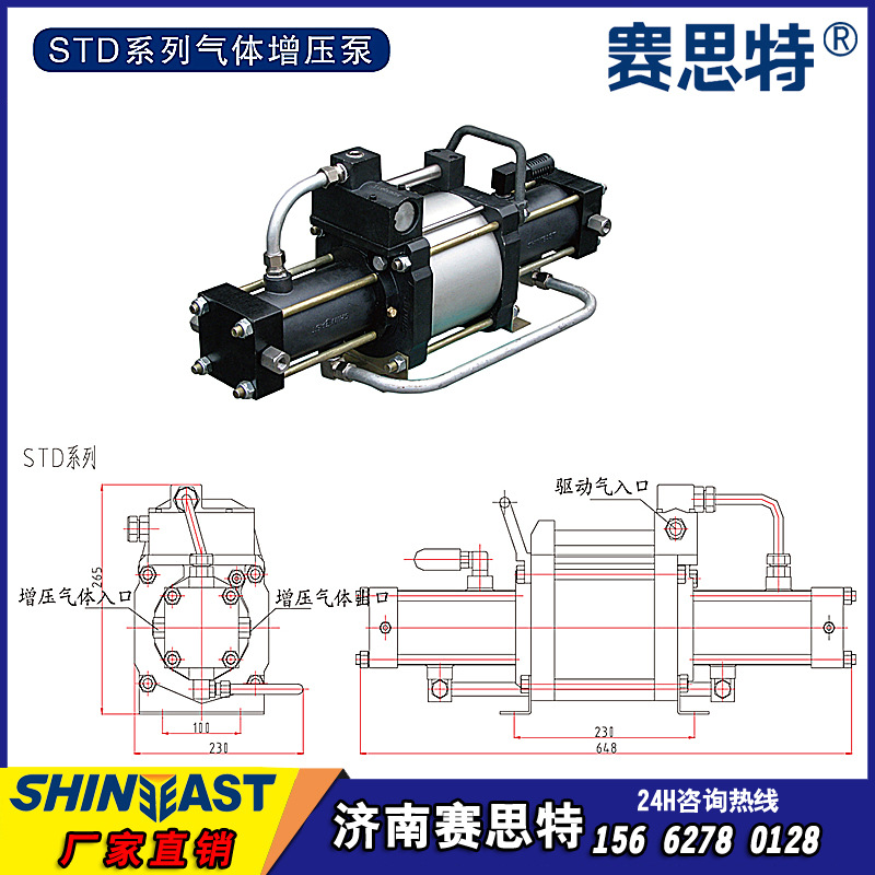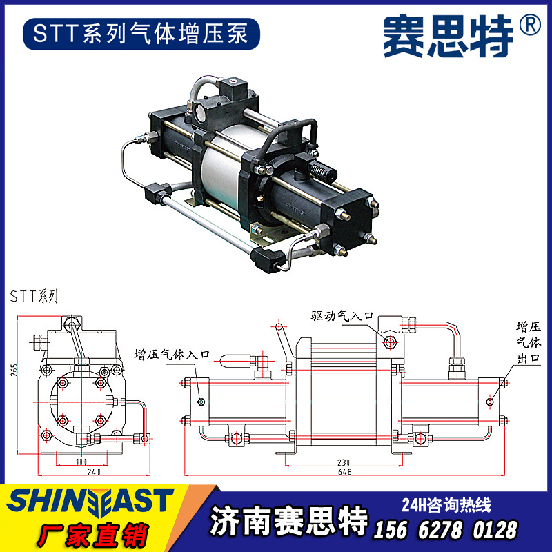 济南赛思特160MM驱动缸径气体增压泵分为GPV/STA/STD/STT四个系列