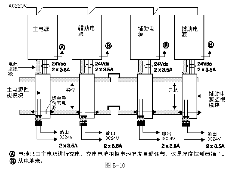爱德华3-BPS/M-230-E辅助电源,一个辅助电源需要配置一个辅助电源监视模板,其功能与主电源监视模板相同,只是无电池充电功能。 它也是 LRM 模板,任一种控制/显示模板均可安装在它的前面。安装见图 B-9。接线见图 B-10。