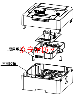 ? 本消火栓按钮内置密封胶垫,具备防水溅功效,为保证本功能的可靠性,安装时请务必拧紧 4 颗紧固螺丝(包装盒内)将消火栓按钮主体与底座紧密结合。