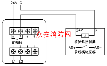 如现场需要消火栓按钮直接启泵则按上述示意图接线,如不需则端子 7、8 端不需接电源线。